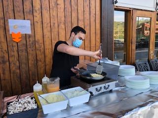 ארוחות בוקר צרפתיות-ישראליות המורכבות ממאפים, סלט, חביתות, פיצה, פסטה ומבחר רחב של גבינות.