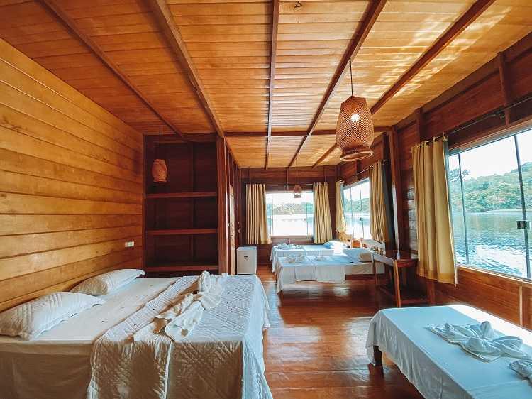 המלון בנוי מבולי עץ שצפים בנהר המכיל לובי גדול עם טלויזיה, מסעדה, ובריכת שחיה בנהר. הסוויטות בגודל של 20 מ"ר, מצוידות בחדר שירותים פרטי, מיטה זוגית, ושתי מיטות יחיד או שלוש מיטות יחיד ומיזוג אויר.
