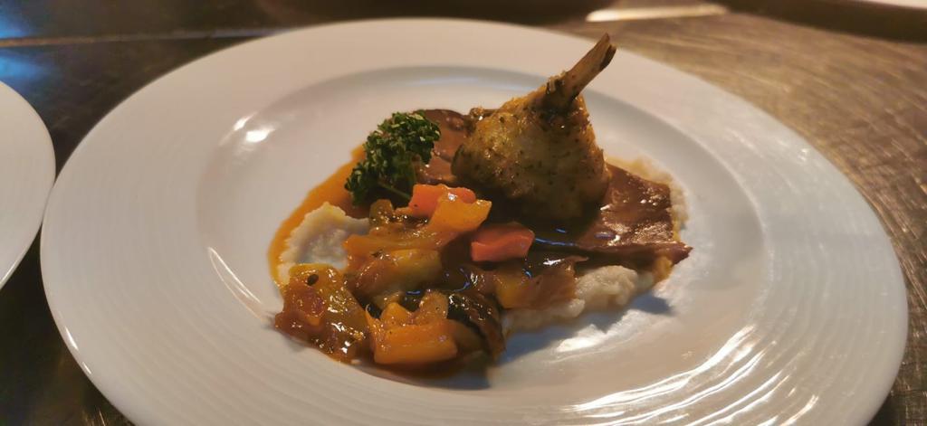 חזה עוף במילוי פירה עם ירקות אפוים ציפס עם קטשופ