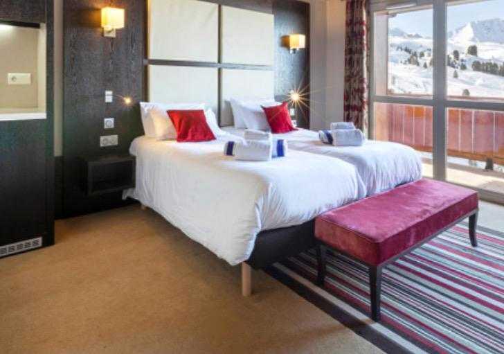 המלון ממוקם בכניסה ללה פלאן, מלון קלאב mmv Les 2 Domaines יקסים אתכם בסגנון הבקתות