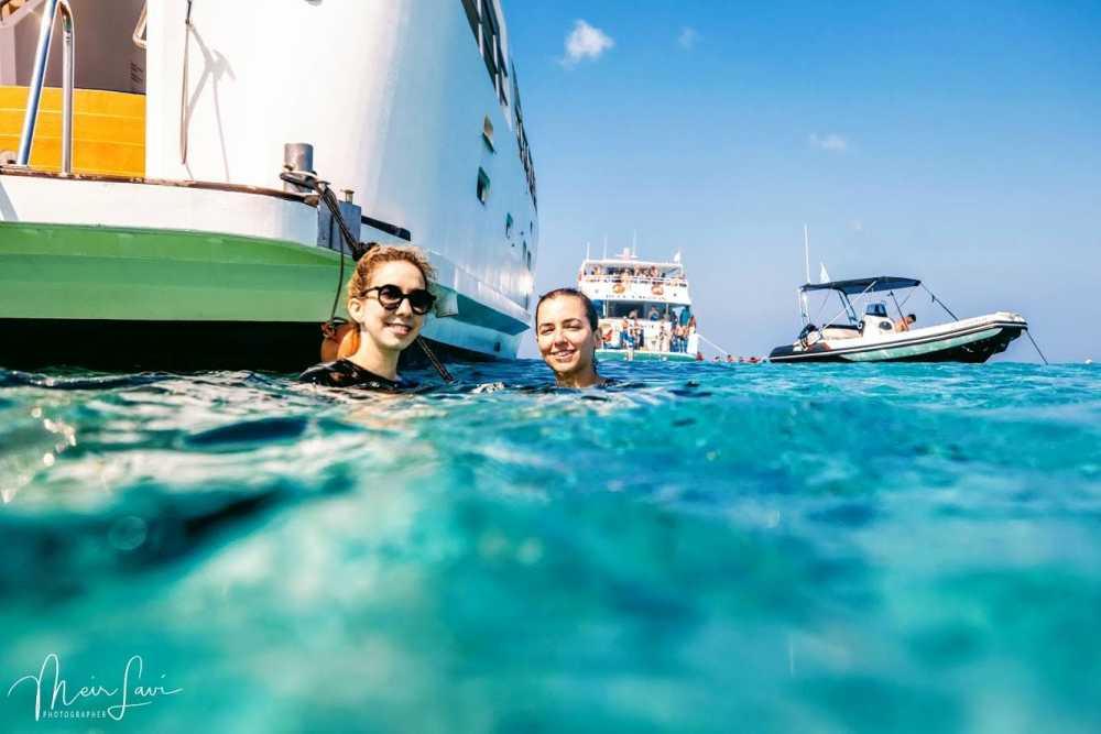 - שייט בלגונה כחולה - כיף לכל המשפחה! הספינה עוגנת באמצע הלגונה והאורחים קופצים אל מי הטורקיז