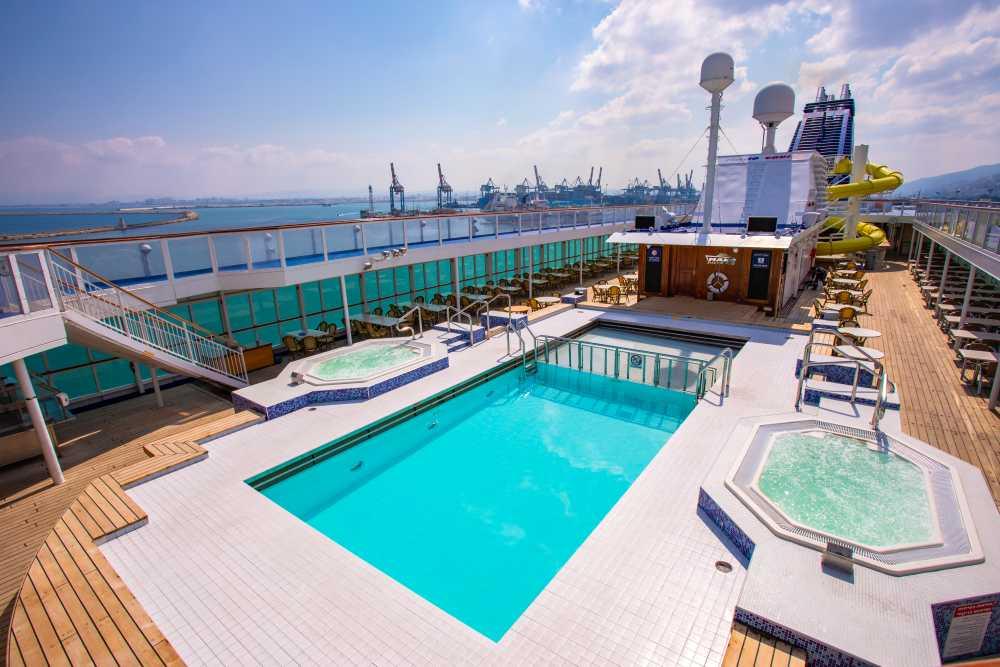 - יחד עם זה, תוכלו ליהנות מהאווירה המופלאה ללא דאגות בכל מקום בספינה המודרנית! שתי בריכות שחייה נהדרות, ובריכת פעוטות. והאטרקציה המרכזית – מגלשת מים מדהימה לחוויה בלתי נשכחת!