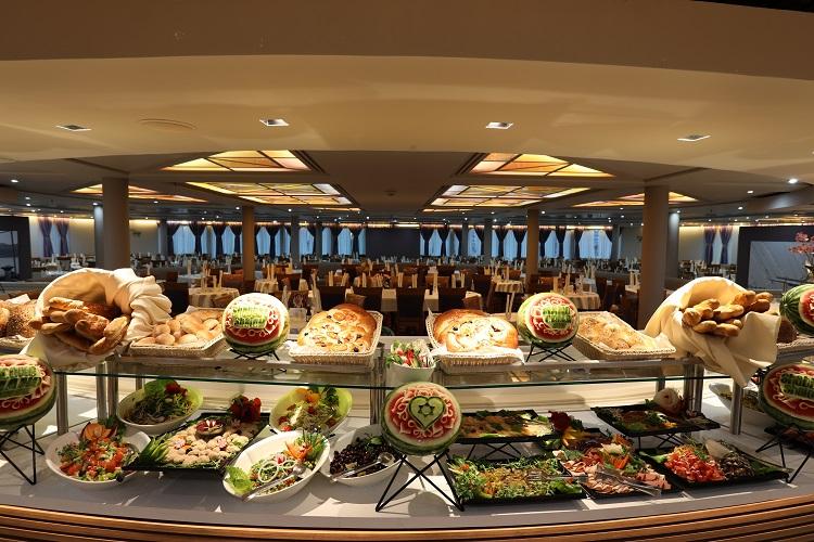 - כל ארוחה כוללת או מזנון עשיר ומגוון, או ארוחה המוגשת לשולחן, המורכבת ממנות שנוצרו במיוחד על ידי השפים על הסיפון. כל אחד ימצא כאן את המאכלים האהובים עליו: בשרים עסיסיים, מנות מיוחדות לצמחונים ומנות שילדים יאהבו.
