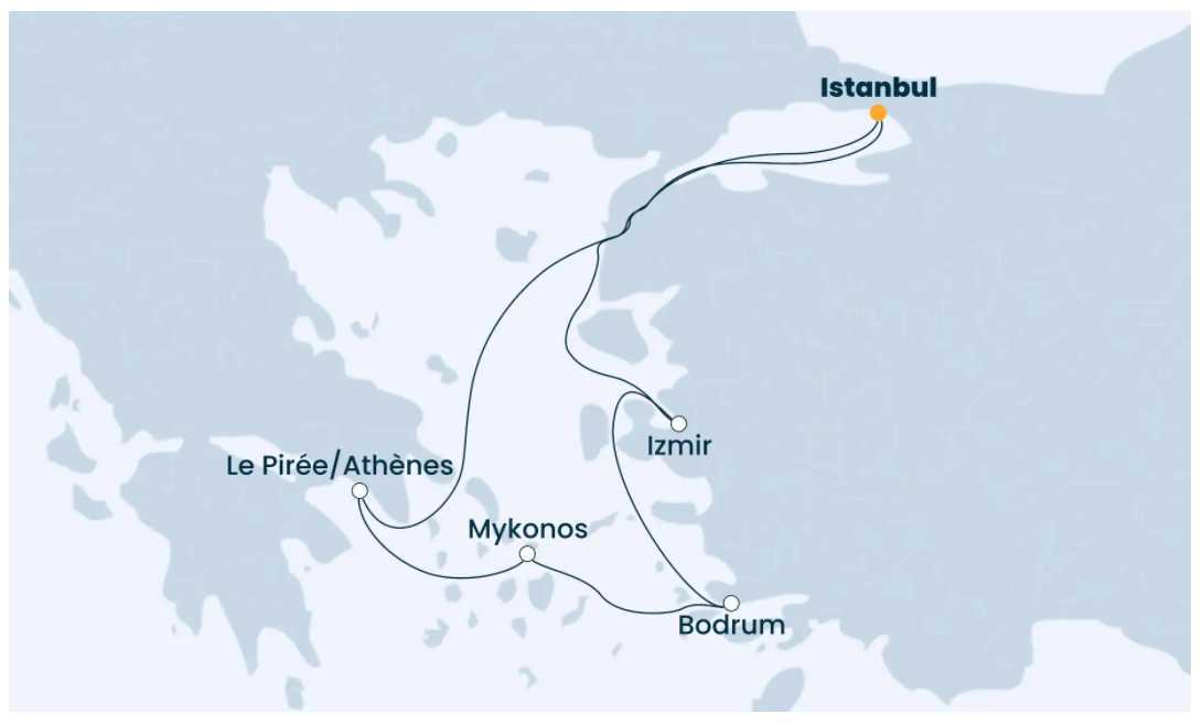 - טורקיה, יוון. (איסטנבול, איזמיר, בודרום, אתונה, מיקונוס)