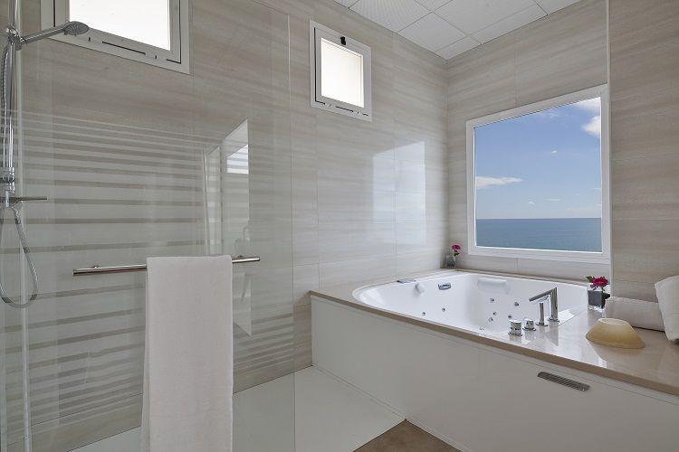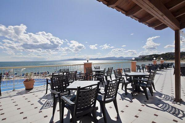 בריכת השחייה החיצונית והטרסה נהנות מנוף לים.