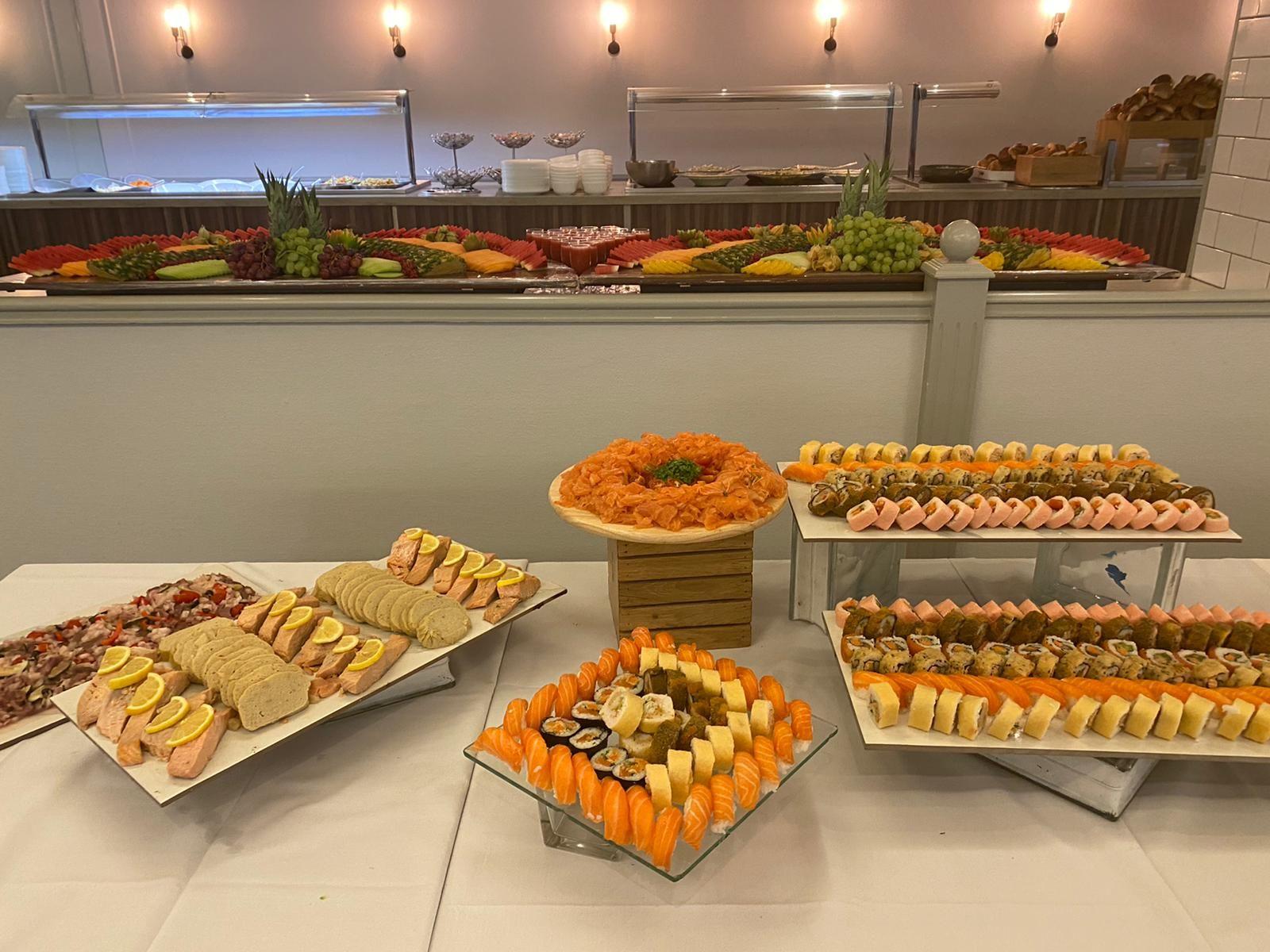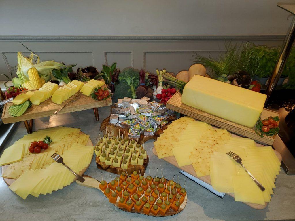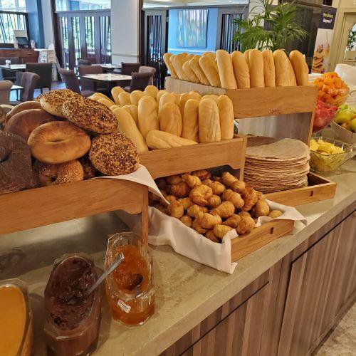 - בר ארוחת הבוקר המגוון עם מאכלים חמים וקרים ומזינים